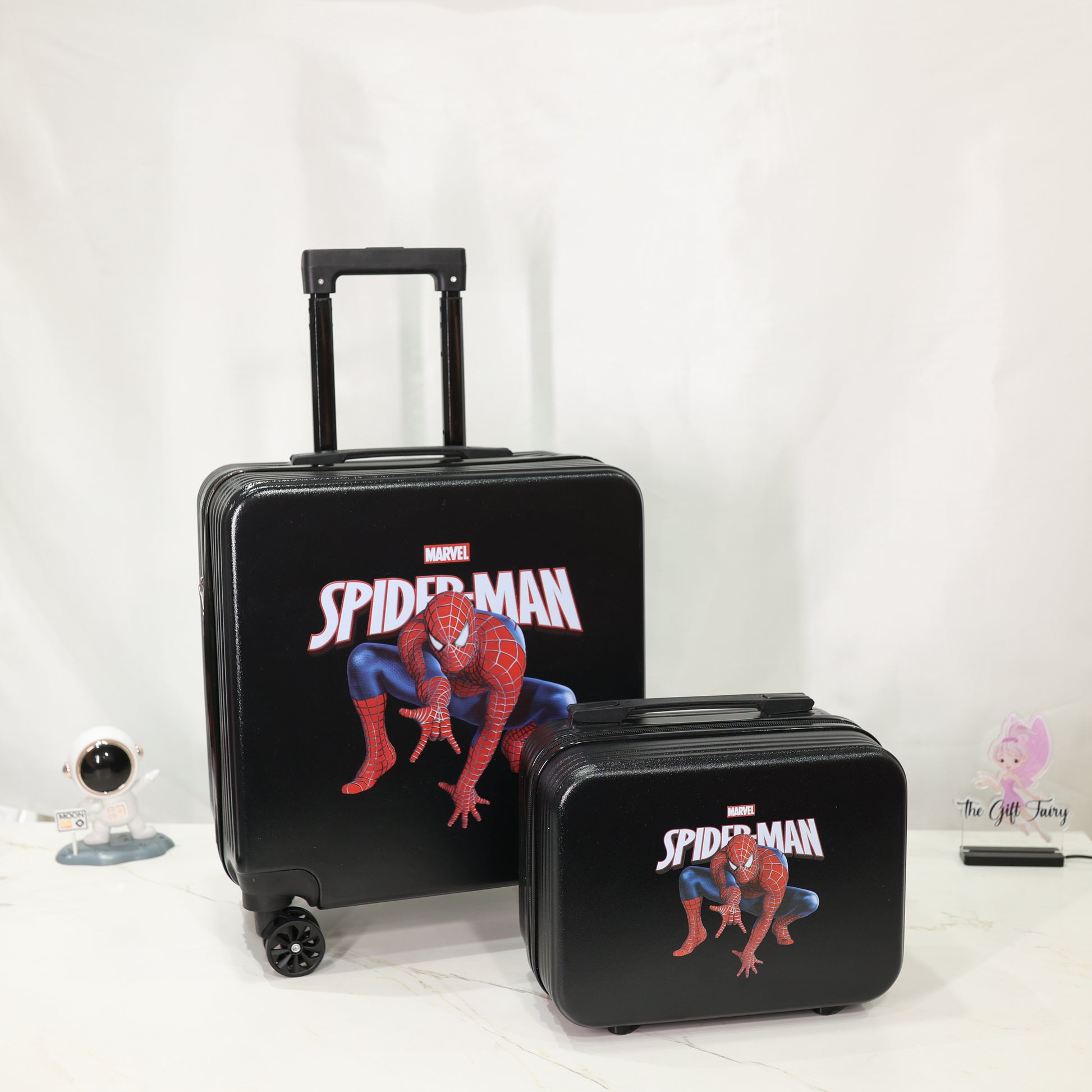 Make every journey exciting with this Spider-Man themed kids luggage set, designed especially for young travelers. This 2-piece set includes a spacious trolley suitcase and a matching cabin bag, perfect for vacations, school trips, sleepovers, and family travel.