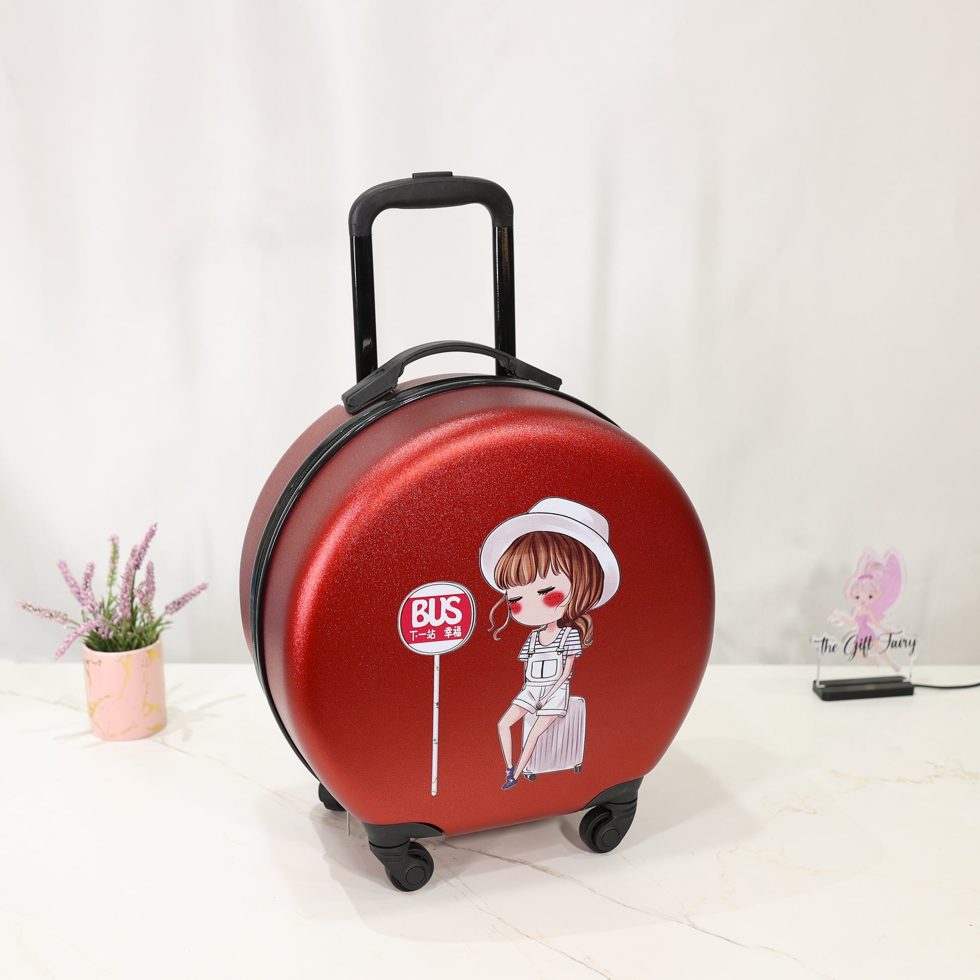 Make travel fun and effortless for kids with this adorable round trolley suitcase. Designed with a playful cartoon print and smooth-rolling wheels, it is perfect for short trips, vacations, school outings, and sleepovers. The compact round shape is easy for children to handle while offering enough space for their essentials.